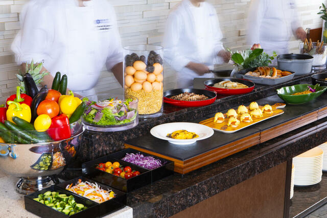 ライブキッチンでは、トリュフが香る「オムライス」や、とろりとした食感が魅力の「オムレツ」、「エッグベネディクト」など、シェフが目の前で一皿一皿を丁寧に仕上げます。