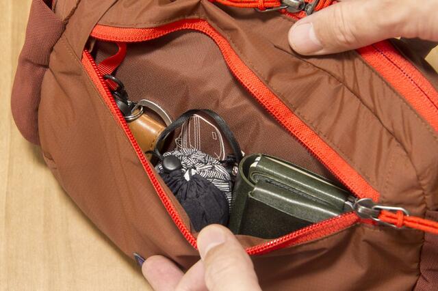 フロントポケットには鍵やよく取り出すお財布などを収納。