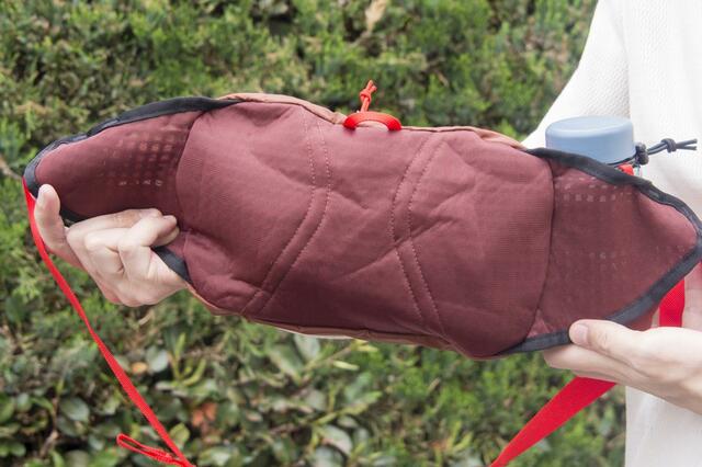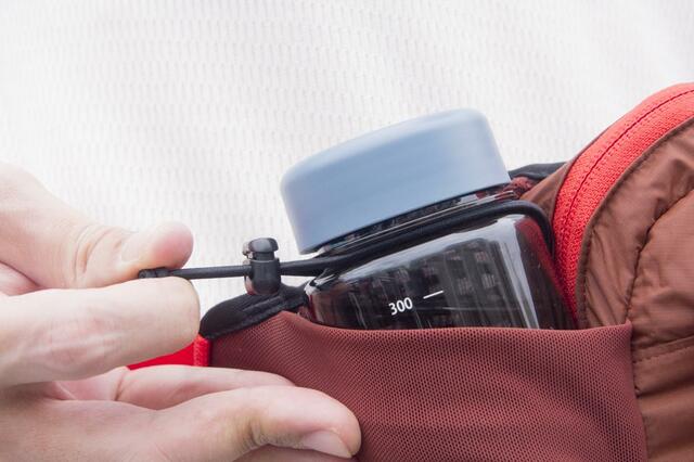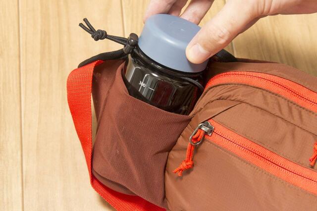 ウォーターボトルを入れた状態で動き回ってもブレにくく、快適性だけで考えたら個人的にはこの持ち方の方がラクに感じました。