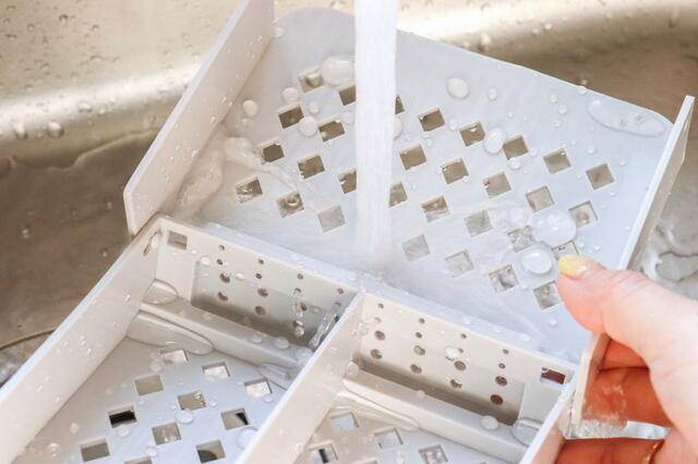サッと洗いやすいうえに、水切りトレーのように水がたまる部分がないので、その点でも扱いやすく感じました。