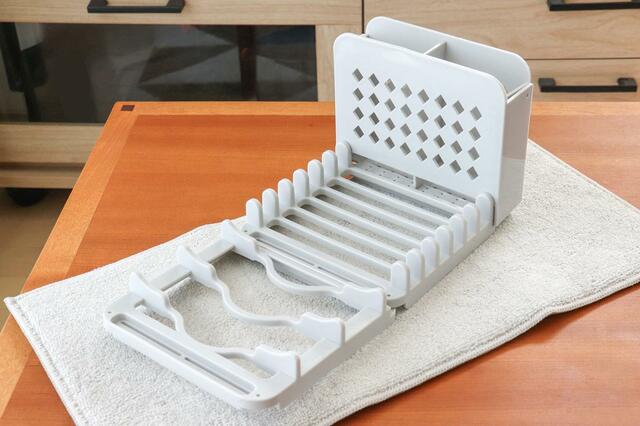 水切りラックといえばカゴタイプを思い浮かべますが、これはなんと組み立て式。
