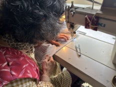 2. 熟練の職人技「スラッシュキルト」の実演:商業用ミシンを乗りこなす熟年の縫製技術を間近でご見学いただけます。