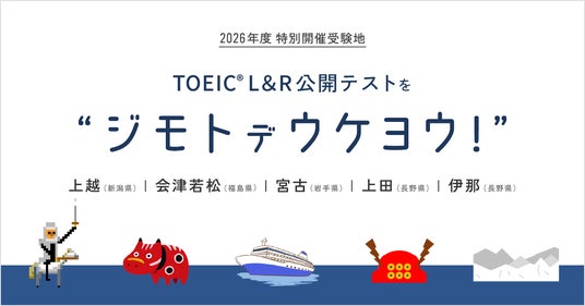 日本でTOEIC Programを実施・運営する国際ビジネスコミュニケーション協会(IIBC)(所在地:東京都中野区中野、理事長:藤沢 裕厚)は、2026年度TOEIC L&R公開テストを昨年に続き、「会津若松(福島県)」「宮古(岩手県)」「上越(新潟県)」「上田(長野県)」「伊那(長野県)」の5受験地で特別開催します。