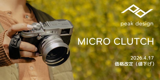 2026年4月17日(金)、ピークデザインのカメラハンドストラップ「マイクロクラッチ」の価格改定(値下げ)を実施します。この機会に、優れたフィット感と快適な操作性をお試しください。