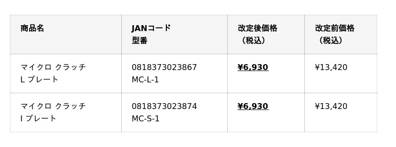 この度、機動力と安定性を両立させる「マイクロクラッチ」を、より多くのお客様にお使いいただけるよう、価格改定(値下げ)を実施いたします。