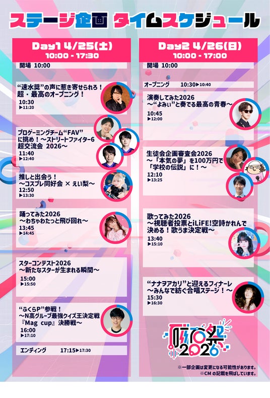 ▼ステージ企画:タイムスケジュール https://nnn.ed.jp/school_festival/real/#schedule