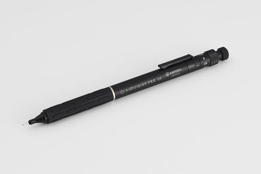 AIMVISION PROは、ブレのないドローイングを実現するために設計された製図用シャープペンです。感覚と視覚のズレを極限まで排除する真鍮削り出しによる高精度なボディ構造+部品構成により、プロフェッショナルな描写体験を提供します。長時間使用でも疲れにくい快適性と、独自構造の芯硬度ダイヤルなど、ユーザーの声に応える工夫が凝縮された一本です。