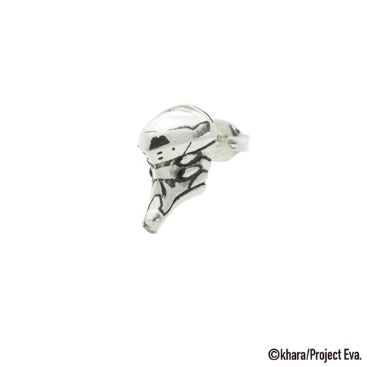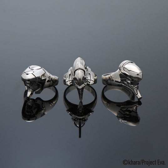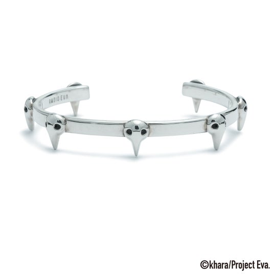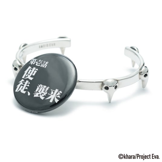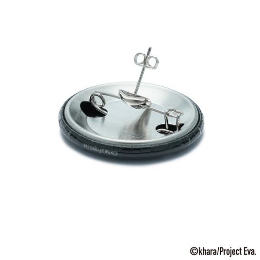 「バッジ脱着アクセサリー」は、第3使徒サキエルをモチーフにしたデザイン。特徴的な“目”の空洞にバッジを通すことができるギミックを備え、アクセサリーとバッジという異物の融合が可能。本来、衣服やバッグに付けることが多いバッジを、リング、ピアス、ネックレス、ブレスレットなどのアクセサリーに装着することで、指元や耳元、手首にまで表現の幅を広げる新発想。(意匠登録第1801589号)