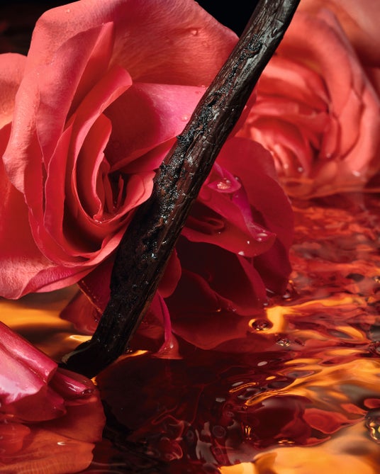 宝石のように多面的に輝くそのローズは、〈シャリマー〉を象徴するアンバーの中でいっそう際立ちます。バニラ、オポパニンアコード、パチュリが織りなすゲラン独自のアコード“オポパニン”に、そのニュアンスが重なり合うことで、ほのかに漂うインセンスが温もりと深みを添え、どこかオリエンタルな余韻を感じさせます。それは、オリジナルの物語へと静かに呼応するかのよう。