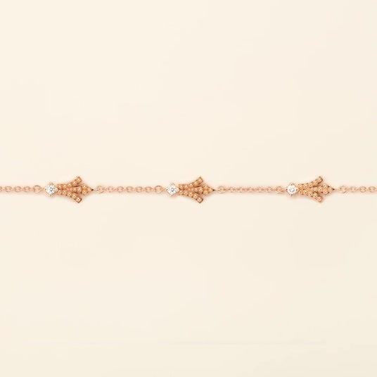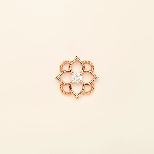 満開の花々を思わせるフォルムを、ピンクゴールドとダイヤモンドで表現し、軽やかで洗練された印象をもたらします。