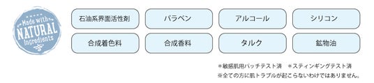 *1 シアノアクリレート系の一般的なグルーをご使用の場合 *2 乾燥による *3 水を含む *4 炭酸水素Na(洗浄成分) *5 乳酸桿菌/セイヨウナシ果汁発酵液(保湿) *6 セラミドNP、セラミドAP、セラミドNG(すべてエモリエント成分)