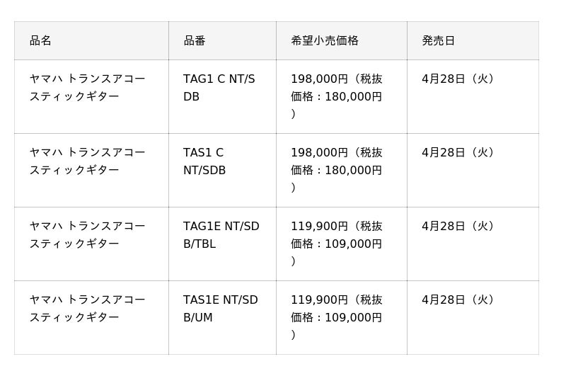 ヤマハ株式会社は、アコースティックギター「トランスアコースティック(TM)ギター」の新製品として、『TAG1 C』『TAS1 C』『TAG1E』『TAS1E』の4モデルを4月28日(火)に発売します。