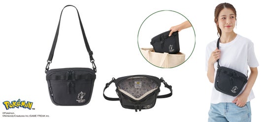 「ポケモン スタンダードボディバッグ」は、500mlのペットボトルも入る収納力抜群のショルダーバッグです。急な雨にも安心の撥水加工を施しているほか、収納に便利なポケットやカラビナなどが付けられるループベルトを採用しているので、身軽に行動したいアウトドアや旅行時に活躍します。ショルダーベルトを取り外してポーチとしても便利で、フロントにはピカチュウの刺繍、内側には自然モチーフの中にポケモンたちのシルエットを散りばめた総柄デザインが施されています。