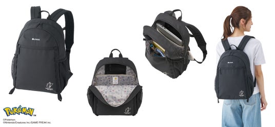 「ポケモン スタンダードデイバッグ」は、男女問わず背負いやすい容量20Lのリュックサック。生地表面には撥水加工が施されているほか、肩の負担を軽減するチェストベルトや14インチ対応のPCポケット、小物の取り付けに便利なデイジーチェーンなどが採用され、普段使いにも活躍。フロントにはピカチュウの刺繍、内側には自然モチーフの中にポケモンたちのシルエットを散りばめた総柄デザインを施し、バッグを開けるたびに楽しい気分を演出。