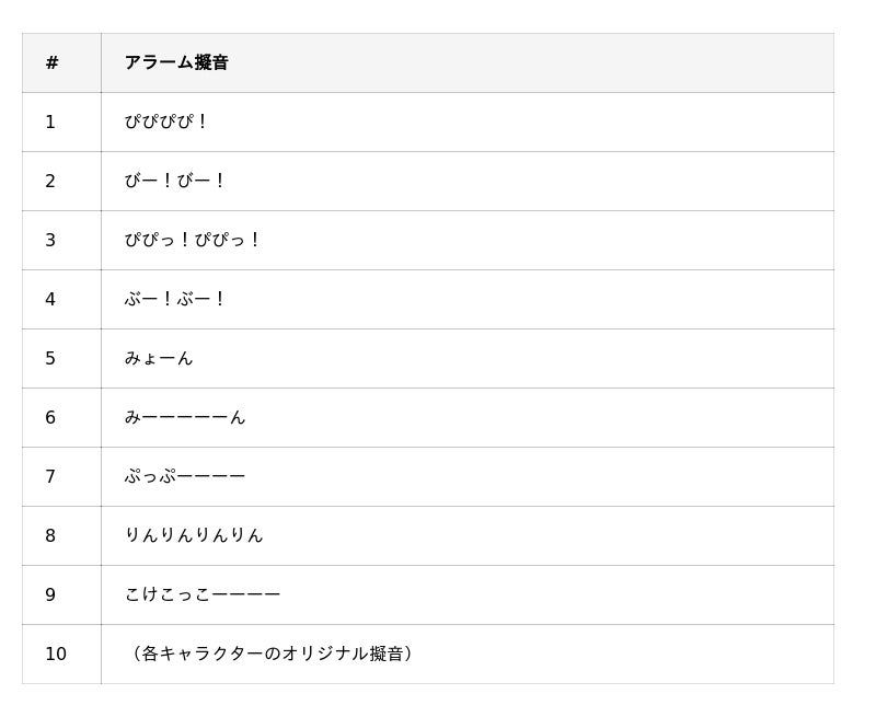 有償DLC「アラーム擬音モノマネパック」(各500円)