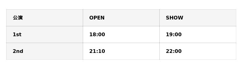 ショー開始20分前までにご入店をお済ませくださいショー上演中は入退場いただくことができません