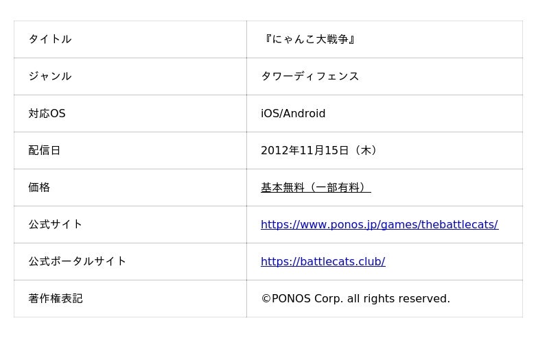ポノス株式会社(本社:京都府京都市、代表取締役:辻子依旦、以下「ポノス」)はスマートフォン向けゲームアプリ『にゃんこ大戦争』13と1/2周年を記念して、2026年4月17日(金)11:00から「13と1/2周年記念イベント」の第1弾を開始いたしました。