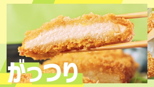柔らかなとんかつにたっぷりの大根おろしを添えることで、ボリューム満点ながらもさっぱりと味わえる『おろしかつめし(丼タイプ)』の美味しさを爽やかに表現しました。とんかつと大根おろしに特製ダレがかかる場面などが見どころです。さらに、春を感じる『たけのこごはん』も登場します。