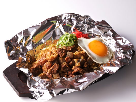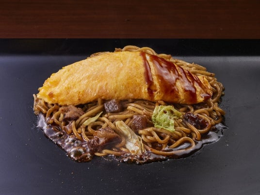 「ぼっかけオムそば」 並1,012円(税込)鉄板でたまごをふわふわに焼き上げ、