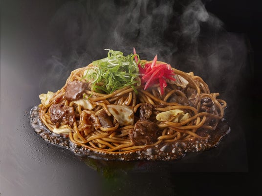 「ぼっかけモダン」 並1,078円(税込)「ぼっかけ焼きそば」に、香ばしく焼き上げたお好み焼きを重ね、味と食感の一体感を楽しめる一品に仕上げました。