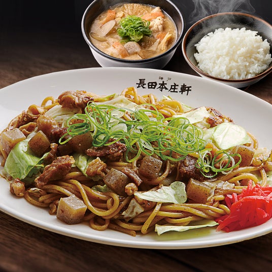 鉄板で香ばしく焼き上げた焼きそばに、ボリューム感のあるセット内容は、ランチにもディナーにもおすすめです。