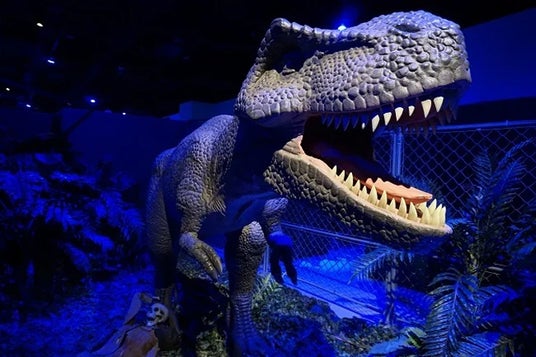 迷路の中には動く!吼える!リアルなティラノサウルスやスピノサウルス、トリケラトプスなどの巨大恐竜たちが出現します!