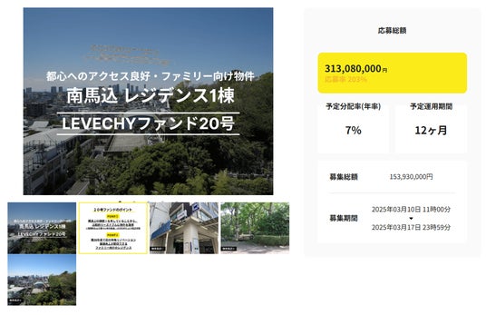 1万円から始める賢い資産運用「LEVECHY(レベチー)」を展開する株式会社LEVECHY(所在地:東京都港区赤坂、代表取締役:高 将司)は、2026年4月17日(金)に「LEVECHY」の第20号ファンドである「LEVECHYファンド20号」の償還および配当が完了したことをお知らせいたします。