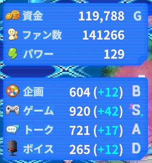 このゲームは「パワーを稼ぐ→配信する→ファンの増加」が基本サイクルとなっています。