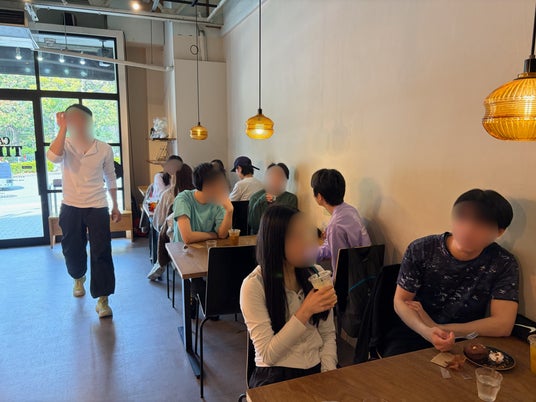 大阪福島ジムReTry_グラングリーン大阪で開催されたランニングイベント_カフェでの交流の様子