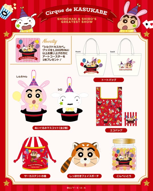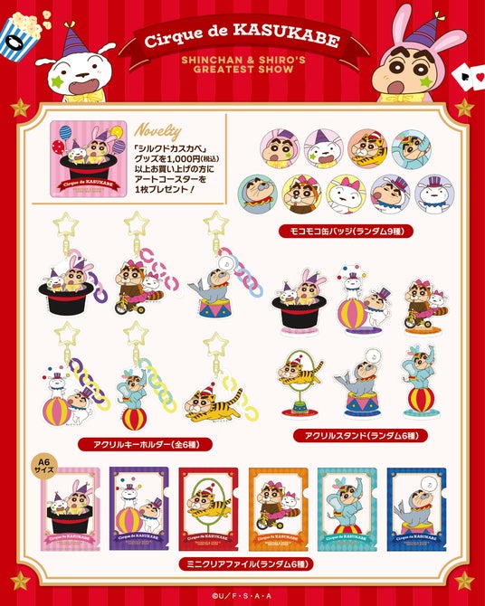 双葉社は、「クレヨンしんちゃん」の描き下ろし新シリーズ『シルクドカスカベ』グッズを、2026年4月17日(金)より発売いたします。しんちゃんとシロたちのとびきりキュートなサーカスが開演♪ 華やかでポップな衣装に身を包んだしんちゃんとシロが、思わず写真を撮りたくなるような愛らしいデザインで登場します。アクリルキーホルダーやポーチ、トートバッグなど、毎日をちょっと楽しく彩るアイテムをラインナップ。普段使いはもちろん、ちょっとしたお出かけにもぴったりです。さらに、税込1,000円以上ご購入の方には、特典としてアートコースターをプレゼント。この春は『シルクドカスカベ』の世界観をぜひお楽しみください。