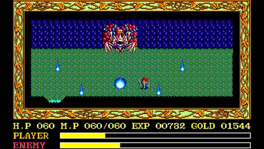 赤毛の冒険家アドルとなり、半キャラずらしで敵を倒しながらエステリアの国を冒険しよう!