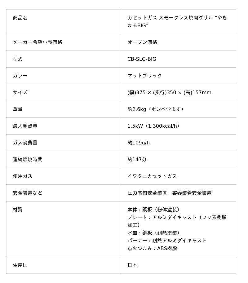 商品購入ページURL(コストコホールセールジャパン ECサイト):https://www.costco.co.jp/Appliances/Electric-Ranges-Gas-Stoves/IWATANI-Gas-Smokeless-Grill-YAKIMARU-BIG-CB-SLG-BIG/p/84884
