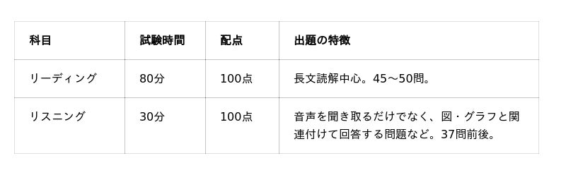 なかでも「英語」は、試験全体の成否を左右する最重要科目のひとつです。「リーディング」と「リスニング」に別れており、それぞれ以下のように実施されます。