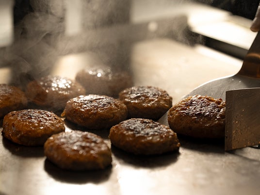 鉄板で焼くハンバーグステーキとバターコーン
