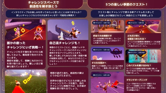 新シーズン「カーニバルの季節」では、雲の上に広がるカーニバルで、準備から本番までの物語が段階的に進行します。
