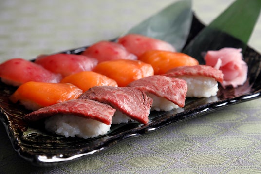 にぎり寿司(マグロ・サーモン・牛肉のタタキ) / 牛肉のしゃぶしゃぶ