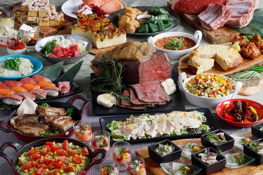 前菜からグリル、メインまで、牛・豚・鶏肉の旨みを存分に味わえるメニューが勢ぞろい。香味のレイヤーが絶品の「よだれ鶏のサラダ仕立て」、ジューシーな肉汁があふれる「ポークスペアリブ」、そしてディナーでは、とろける旨みが際立つ「神戸牛の赤ワイン煮込み」(お一人様一皿)など、ミートで満たされるひとときをお楽しみください。さらに、近鉄百貨店 あべのハルカス近鉄本店の“ハルカスベジフェス!”とのコラボレーションにより、野菜の魅力あふれる彩り豊かな品々も登場。GW期間中(5月2日(土)~ 5月6日(水・振休))には、パティシエが手がけるいちごスイーツがブッフェ台を華やかに彩る、スペシャルフェアも開催します。