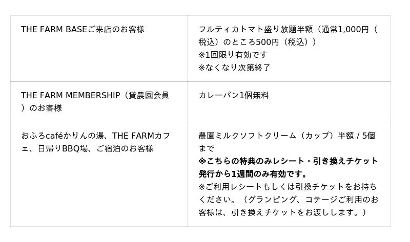 https://creative.thefarm.jp/thefarm_base【THE FARM BASEオープン記念キャンペーン】概要