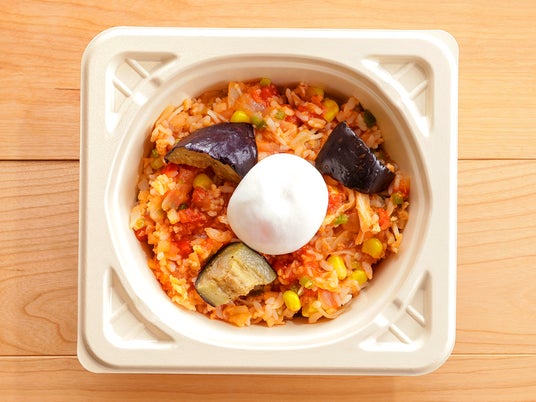 本商品は、とろっとした卵と、野菜の旨みが溶け込んだトマトソースを合わせたやさしい味わいのリゾットです。なす、コーン、きのこなどの多彩な具材が食感のアクセントとなり、最後まで飽きずにお楽しみいただけます。ほどよい酸味とコクのバランスは、エネルギーをチャージしたい朝食やランチ、軽めに済ませたい夕食にも最適な一皿です。