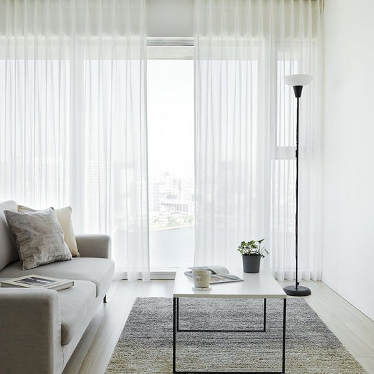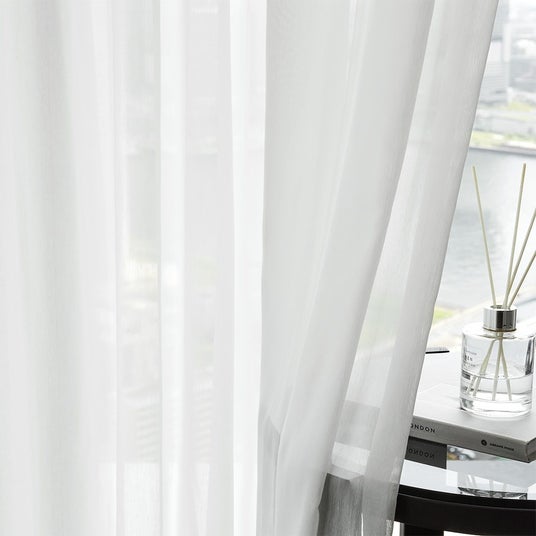 継ぎ目のないシームレス仕立てで、大きな窓もすっきりと美しく整えるレースカーテン。日差しによる暑さが気になる窓辺に、セラミック微粒子が光を反射し、室温上昇を抑えて快適な空間づくりをサポートしてくれます。