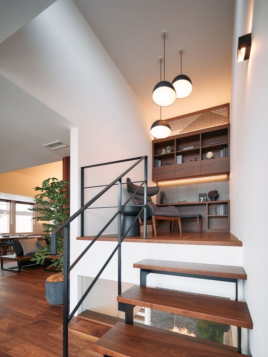 ピットリビング(左)とスキップフロア(上)。 空間を縦に活用することで提案の幅が広がる