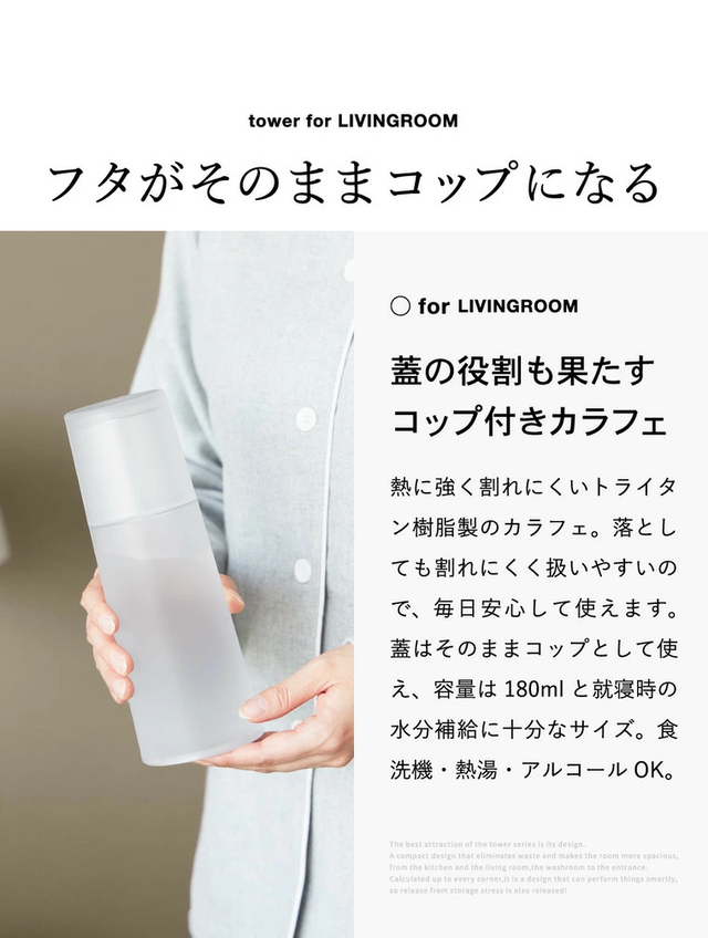 就寝時の水分補給に最適。コップがフタになる「山崎実業 ベッドサイドカラフェ タワー」がポイント5倍に