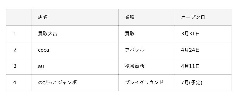 <イオンモール津山インター 専門店リニューアル 店舗リスト>