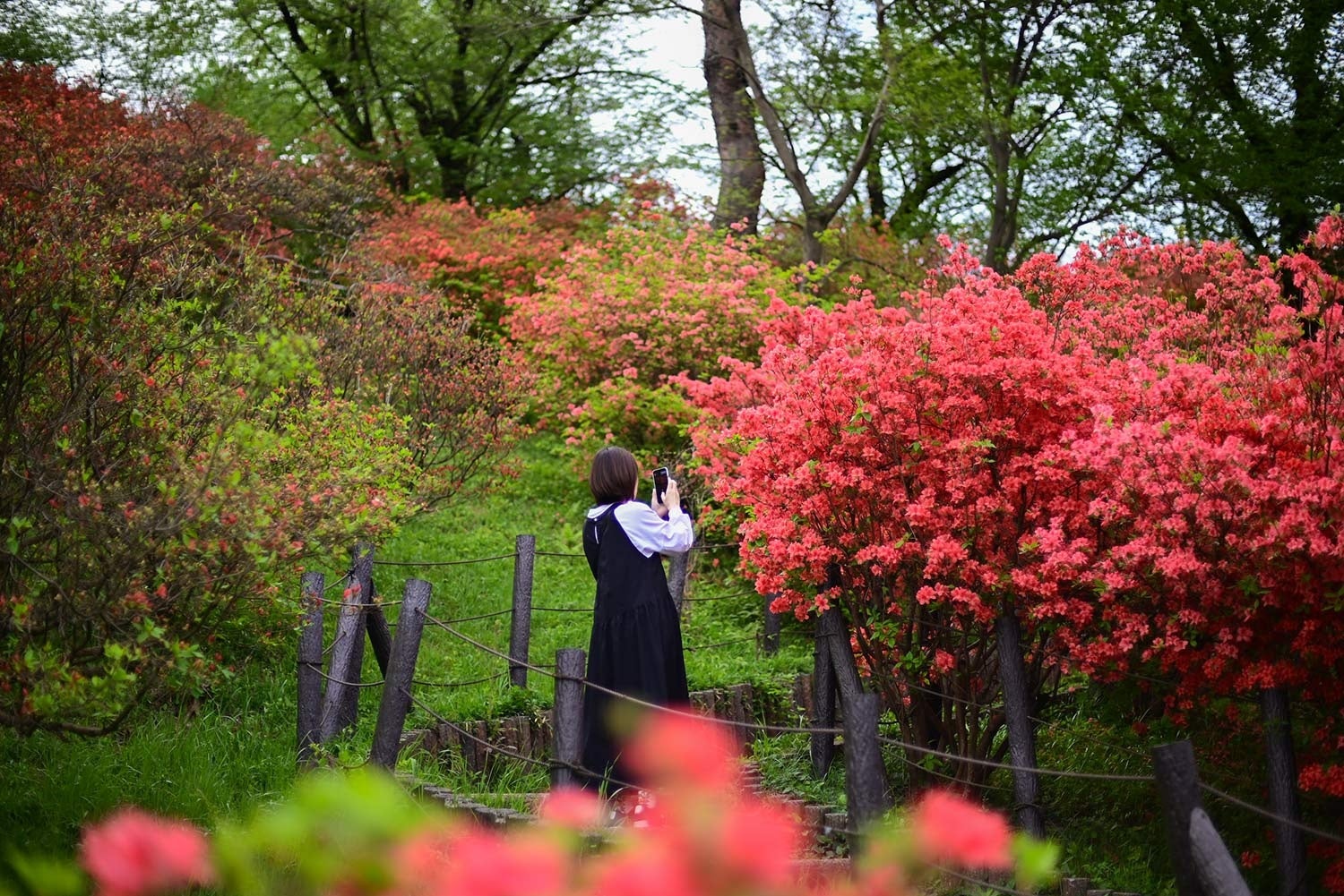 目の前でツツジを撮影することもできます
