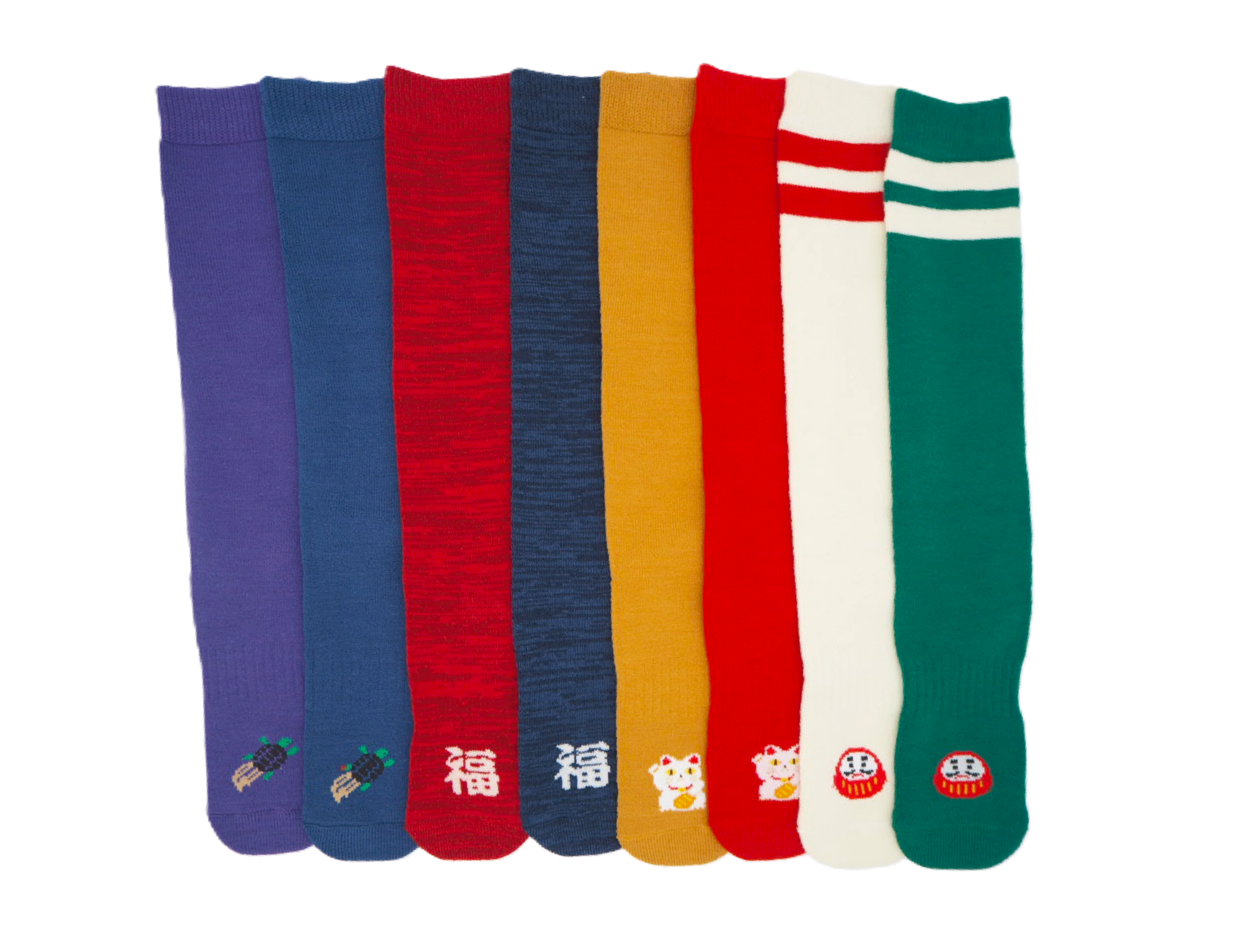 足下から運を呼び込めるよう、つま先に縁起物の「亀」「福」「招き猫」「だるま」をあしらいました。