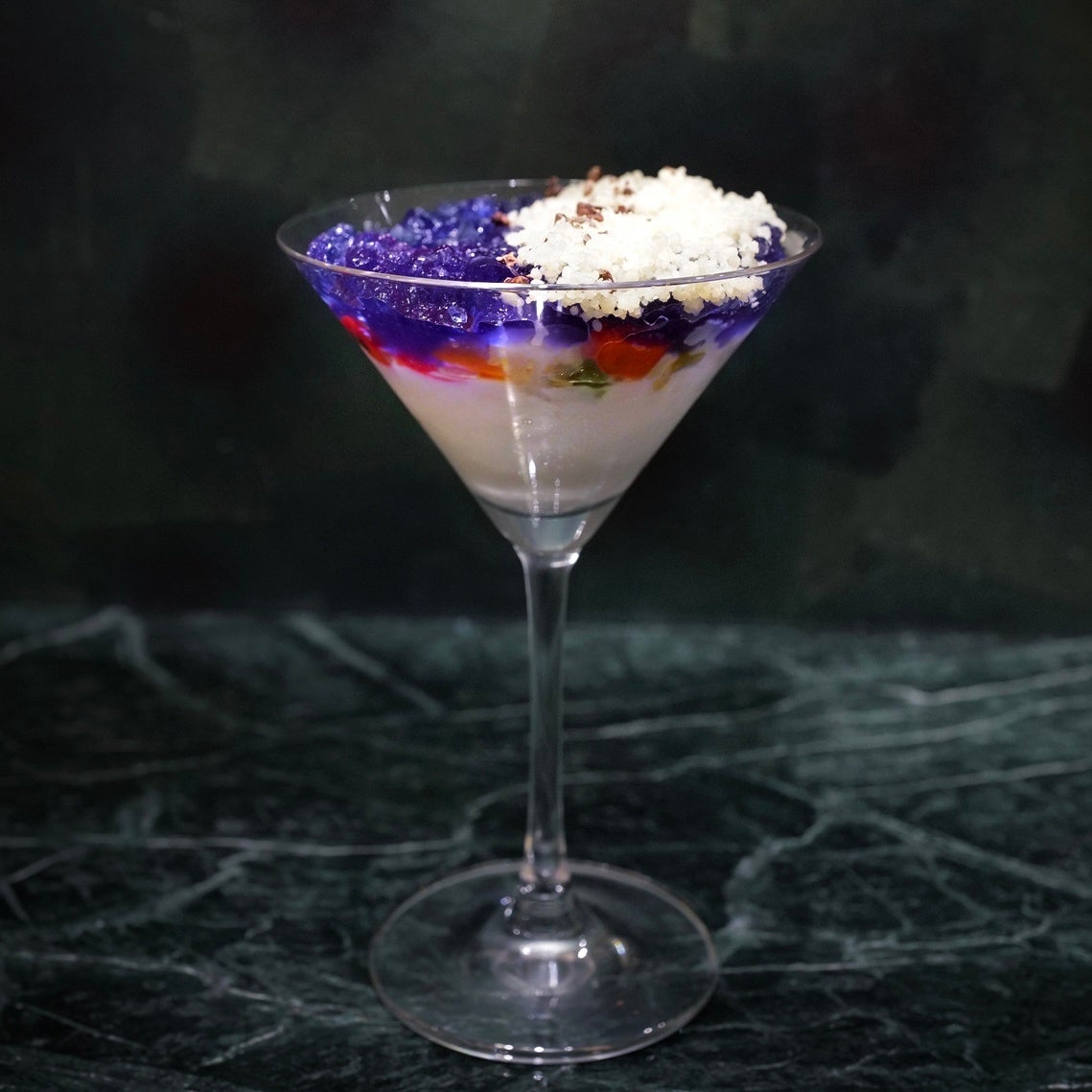 プレミアムジンとブルーキュラソーが織りなす、爽やかで奥行きのある味わいは、まさに島でのバケーションの始まりにふさわしい一杯です。心地よい潮風を感じるような、上質なひとときを演出します。