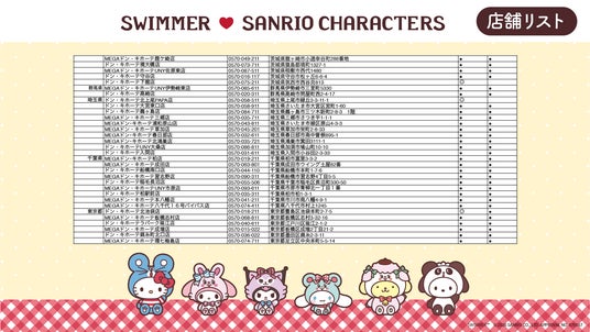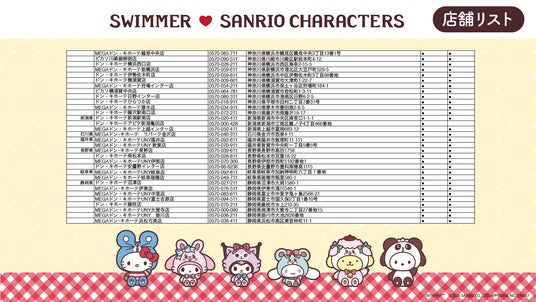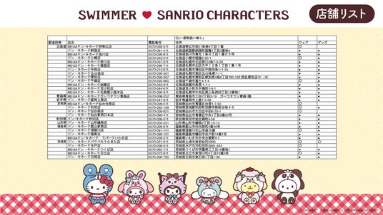 アパレルメーカーである株式会社ブランチ・アウト(以下、ブランチ・アウト、本社:東京都渋谷区、代表取締役社長:大谷 真一)は大人気雑貨ブランド「SWIMMER」と株式会社サンリオのキャラクター『サンリオキャラクターズ』のコラボアイテムを製作。全国のドン・キホーテ、アピタ店舗(一部店舗を除く)にて4月18日(土)より発売されます。