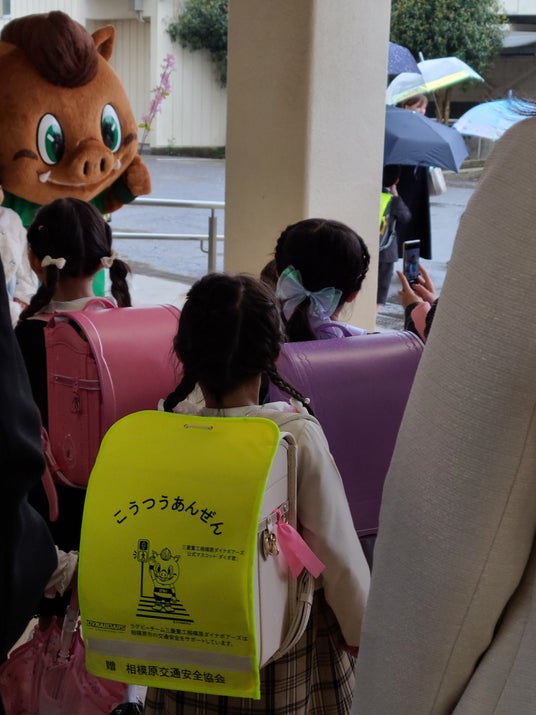 ダイナボアーズのランドセルカバーをつけた子どもたち