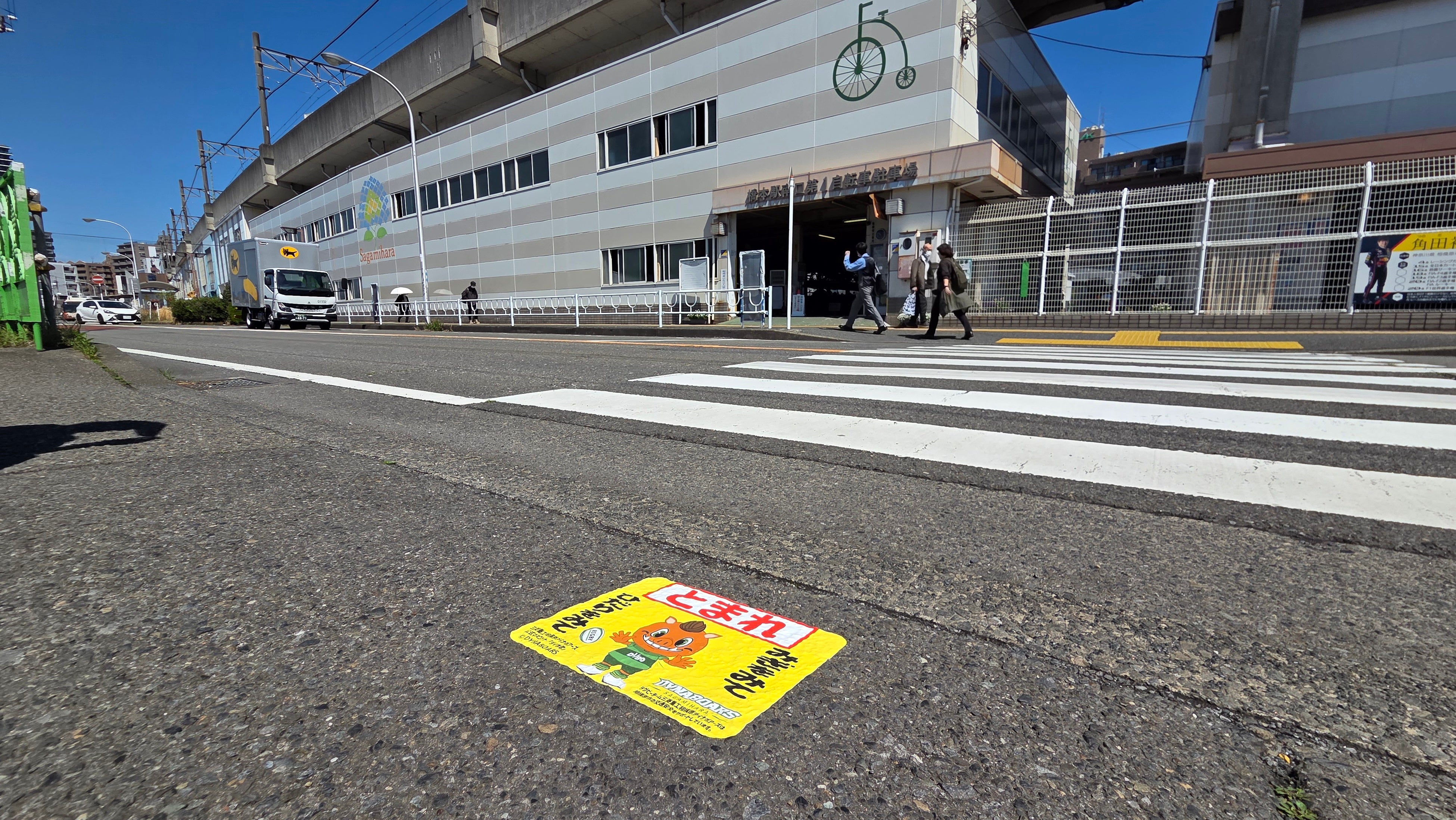 本企画は、その交通安全啓発活動の延長として企画されたものです。信号機のない横断歩道は、歩行者と車両の接触事故のリスクが高まる場所であり、子どもたちにも親しみのある「ダイボ君」をモチーフにしたストップマークを掲出することで、視覚的に「とまれ」「みぎをみて」「ひだりをみて」という基本的な交通ルールを促します。