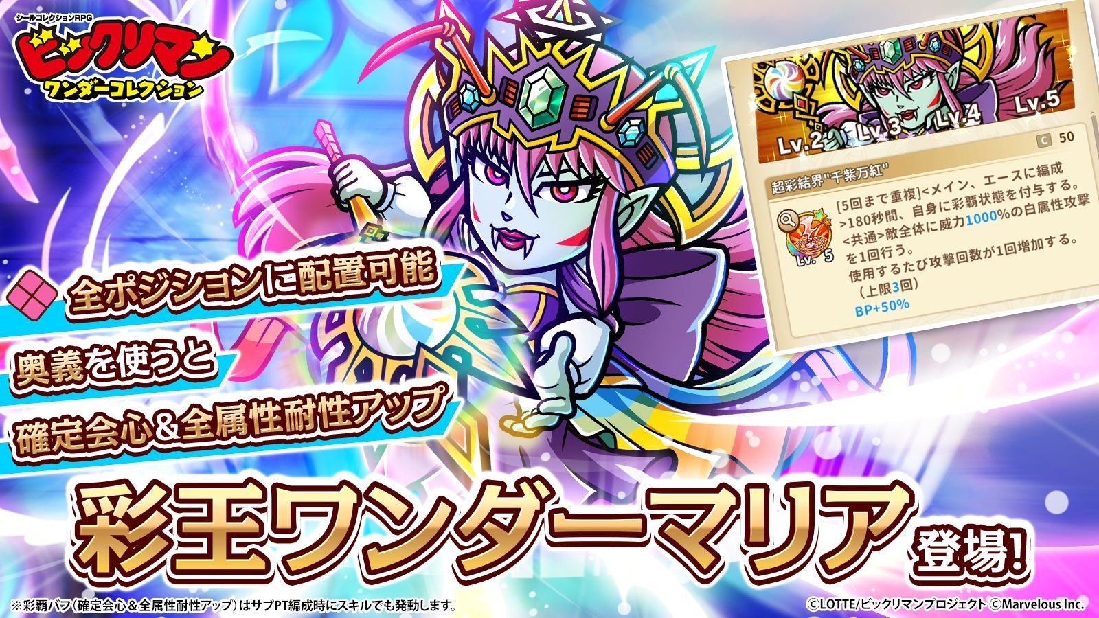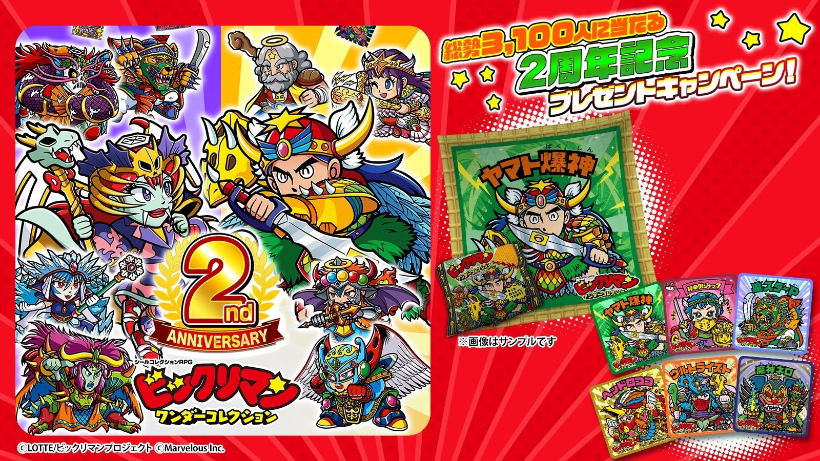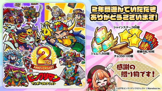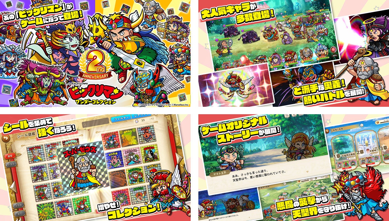 株式会社マーベラス(代表取締役社長:照井 慎一/所在地:東京都品川区)は、シールコレクションRPG『ビックリマン・ワンダーコレクション』にて無料100連キャンペーンや総勢3,100人に当たる「2周年記念プレゼントキャンペーン!」等を含む「ワンコレ2周年キャンペーン」が2026年4月17日に開催されたことをお知らせいたします。また併せて期間限定イベント「極限支配 彩王ワンダーマリア」、「若異聖神と魔彩王ガチャ」等を開始いたしました。